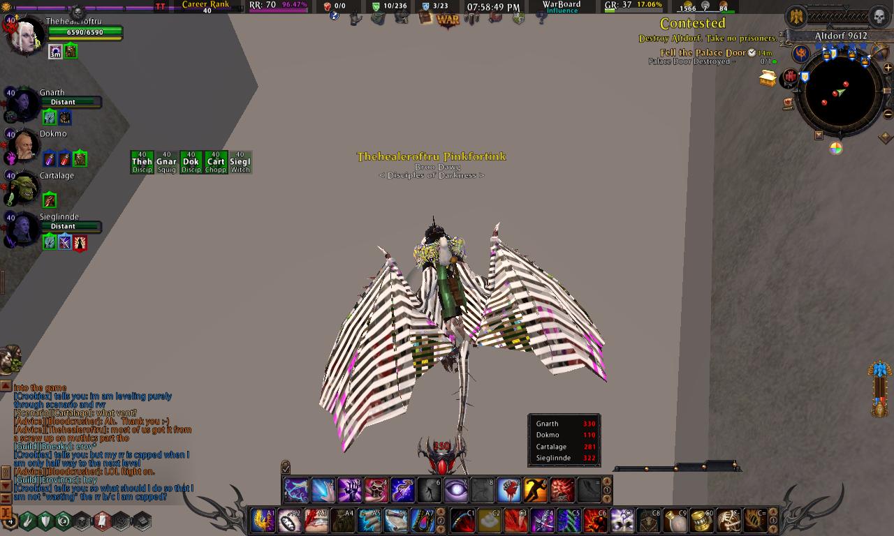 So, now the opposing realm pushes you into your spawn point while your poor Tchar/Franz is left to face a horrible death of lots of fire and a poor reminder of the little girl he let down. Now since I have no more fighting to go over (Other than saying go into the champ party even if not a champ and claim you're "support" for more renown, ssshhh) I will tell you to observe the area and look at order's top 10 champ people. It changes every week, I feel VERY bad for the stone carver that has to do this weekly. Must be a sad, long, boring life.